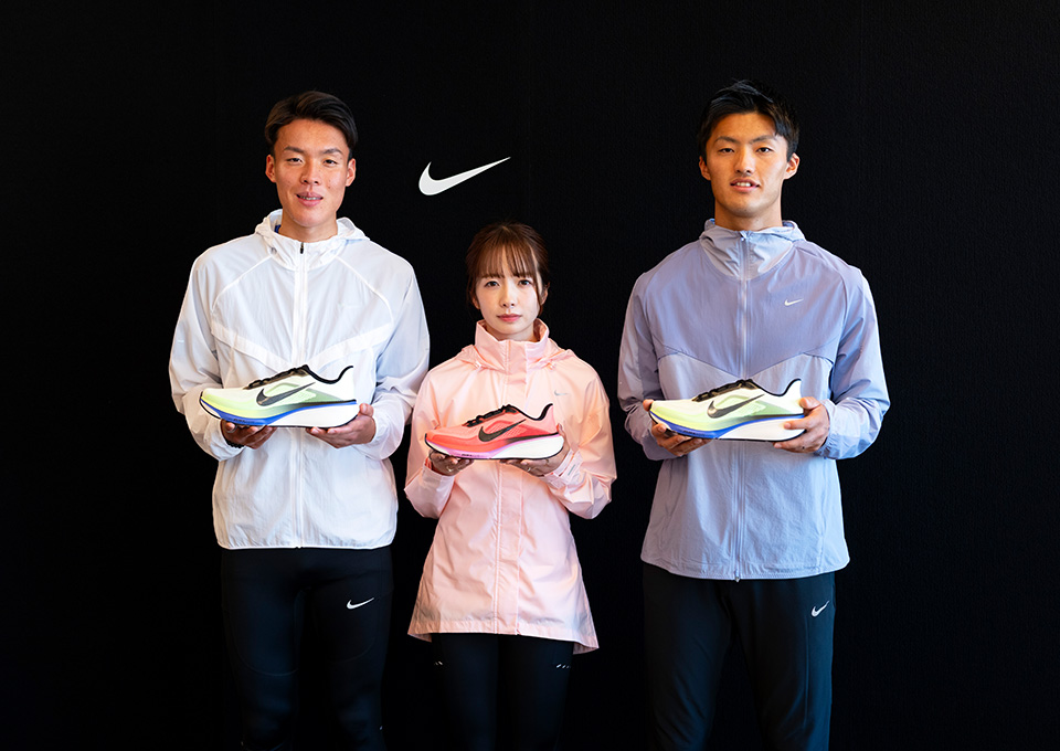 左:佐藤圭汰選手 中央:佐藤早也伽選手(積水化学) 右:柳田大輝選手(ホンダ) ナイキ ランニングは、ペガサス シリーズ...