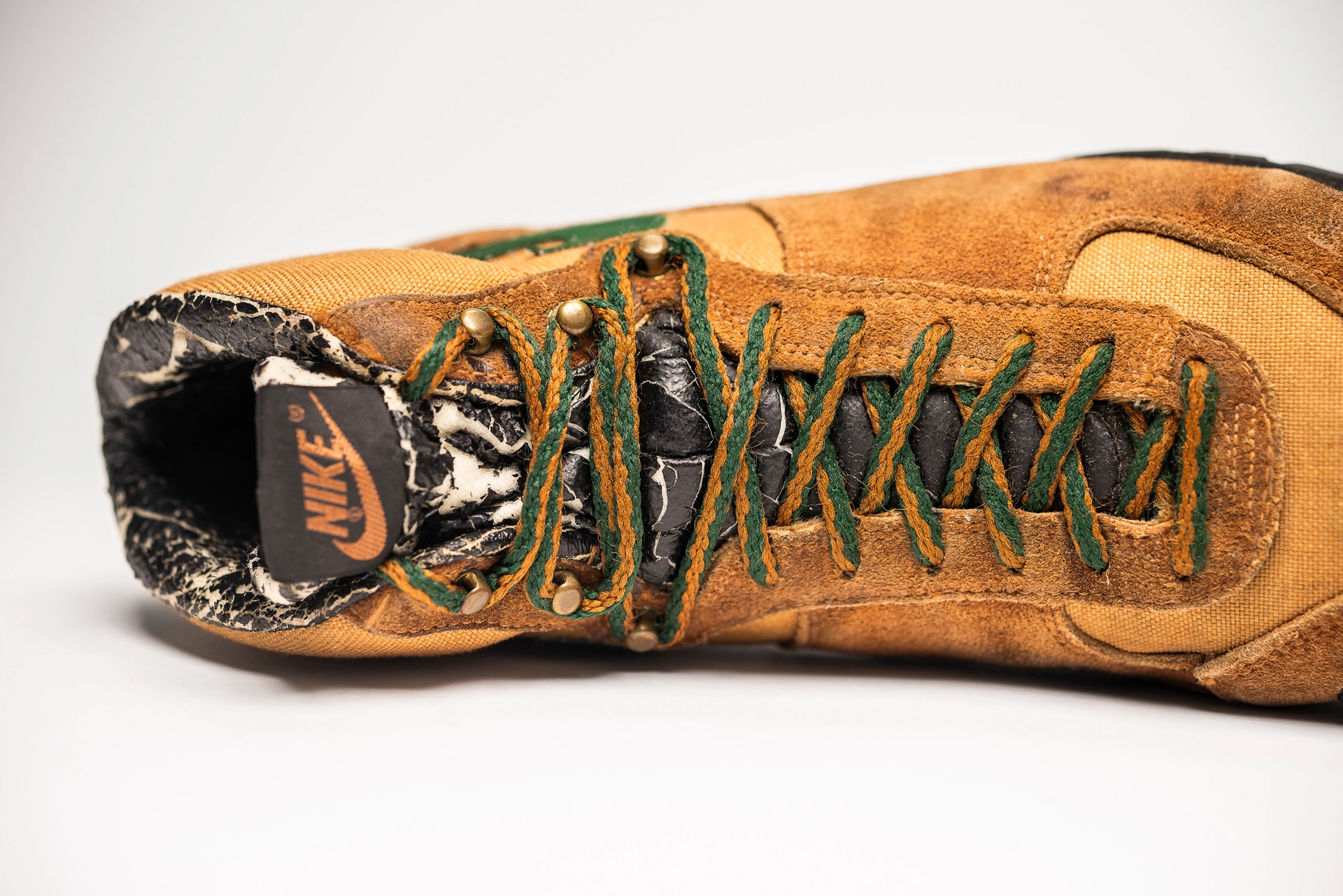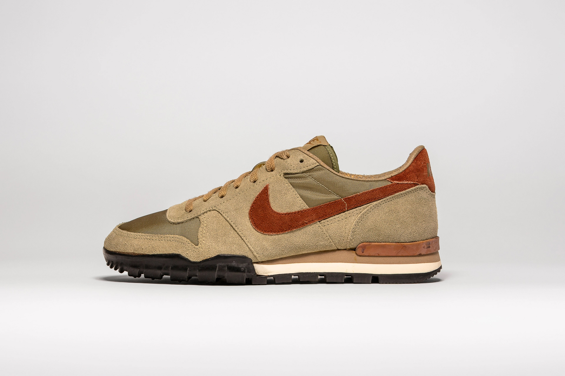 ニューハンプシャー州エクセターのサコ工場で製造されたアプローチは、ワッフルアウトソールと、レザーおよびコーデュラ素材のアッパーを組み合わせ、ナイキ初のGORE-TEXライニング採用シューズとなりました。